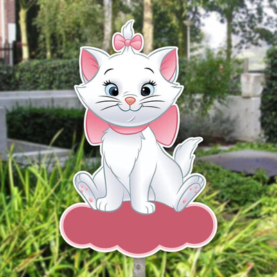 Van alle bekende figuren die worden gebruikt voor geboorteborden in de tuin, zijn de karakters uit de Disney films misschien wel het meest geliefd. Voor de liefhebbers hebben we daarom een bord gemaakt van Marie uit Disney’s Artistokatten (Aristocats). We kunnen de naam van het kind voor je op het naambord printen, of als je geen naam invult, zullen we het naambord leeg laten, en kun je later zelf met plakletters de naam van het kind er op plakken.